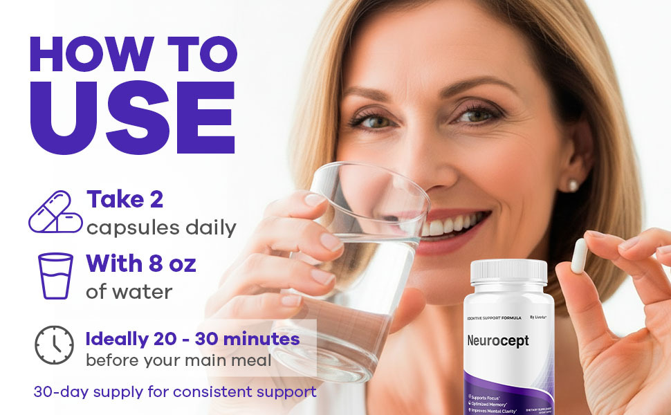 For best results, take Neurocept exactly as directed on the product label. Consume one capsule daily with a full glass of water, preferably in the morning with breakfast, to supportfocus and energy throughout the day.